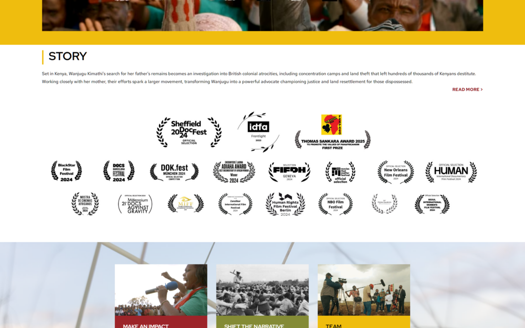 OUR LAND, OUR FREEDOM tells the story of two extraordinary Kenyan women – a mother and daughter, Mukami and Wanjugu Kimathi, who share a mission to shine a light on the too-long-kept secret atrocities of British colonial rule in Kenya. Mukami was a freedom fighter in Kenya’s 1950s independence movement, and was married to its iconic leader, Dedan Kimathi. In 1957, Kimathi was hanged by the British, his body disposed of anonymously. Since then, Mukami has been searching for Kimathi’s remains, but becomes too frail to continue. Her daughter, Wanjugu, determined to fulfill her mother’s last wishes, takes over this quest. Along her journey, Wanjugu learns of a buried history of colonial atrocities, including concentration camps, mass graves, and the vast theft of land that left hundreds of thousands of Kenyans destitute. This sparks a new mission for Wanjugu: she realizes she must demand compensation for the landless. Working closely with her mother, she transforms into a powerful leader in her own right, advocating for exposing past colonial crimes, while building a nation-wide grassroots movement for land resettlement.
